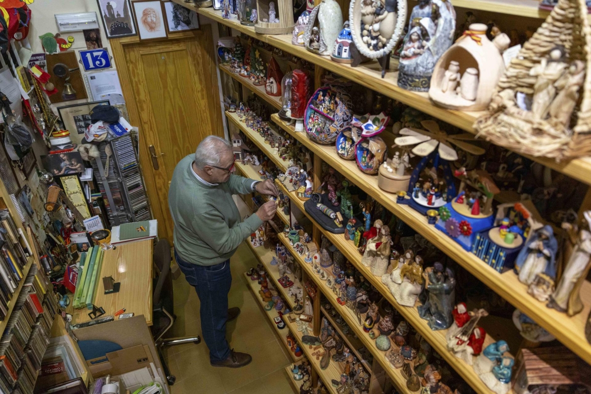 En su local, que visita con frecuencia y donde se mueve con una escalera de 14 peldaños, tiene belenes de todo el mundo: “Entre el 40 y 60 por ciento son obsequios de familiares o amigos de cuando salen de viaje, aunque también compro en el Comercio Justo de Orihuela y La Abadía".