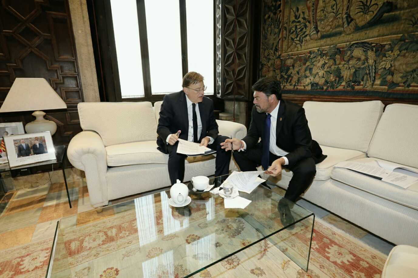 El alcalde también planteó a Puig la necesidad de que se pase de las palabras a los hechos en la ejecución de infraestructuras estratégicas como la conexión del Puerto y el Aeropuerto, la finalización de la Vía Parque con la eliminación de la vía de la vagoneta, y el tramo del PAU II para que se cierre ese primer cinturón urbano que conectará Playa San Juan con los Palmerales y la Vía Parque Alicante-Elche.