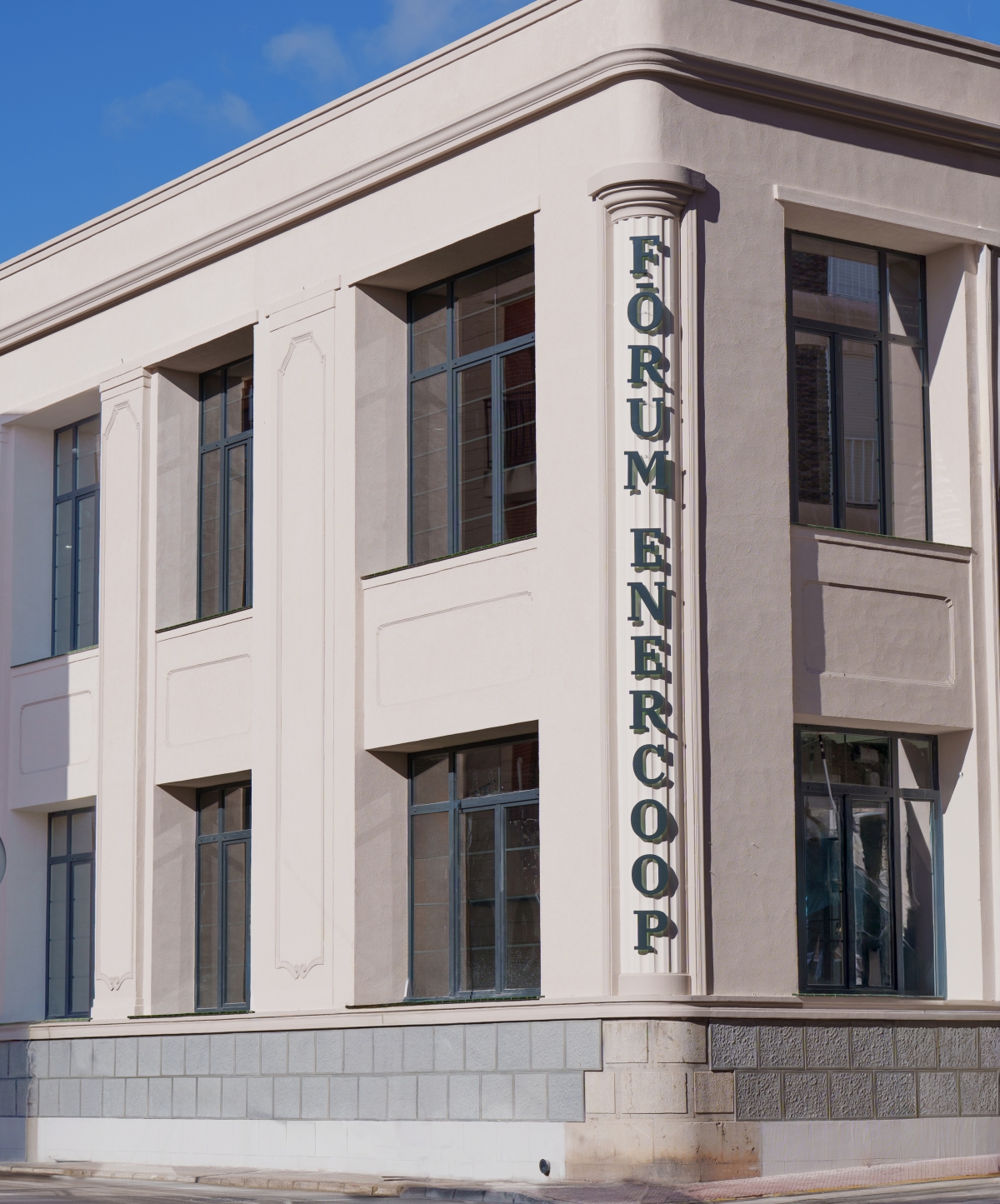 El nuevo edificio Fōrum Enercoop ha sido recientemente rehabilitado y se sitúa sobre el inmueble construido en la década de 1940 que ocupaba la antigua fábrica de alfombras “Universal”, antes fábrica de alpargatas “Viuda de José Galvañ”, en el centro de la población, adquirida por la cooperativa en 2017. Se trata de un edificio parcialmente protegido y destacado ejemplo de la arquitectura industrial de principios del siglo XX, que ha sido reformado parcialmente, respetando su esencia original. Atendiendo al sector en el que el Grupo Enercoop centra su actividad, el energético, el edificio ha sido rehabilitado con unos parámetros de calidad y de eficiencia energética muy por encima de los mínimos que establecen las normas, lo que nos permitirá incluso certificarlo con alguno de los sellos de excelencia que reconocen este tipo de diseño para que se convierta en un edificio de consumo energético casi nulo (Near Zero Energy Builing), al contar con sistemas de producción propia de energía y sistemas de almacenamiento de alta capacidad.