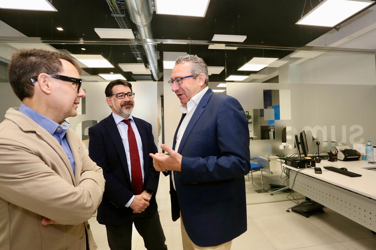 Acompañado por el alcalde del municipio, José Rafael Pascual, y el director de Suma, José Antonio Belso, el dirigente alicantino ha recorrido esta oficina ubicada en la Plaza Mayor, recientemente renovada que presta servicio tanto a los vecinos de esta localidad como a los de Agost, con una población que ronda los 70.000 habitantes.